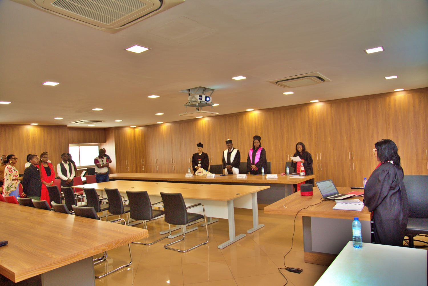 As defesas arrancaram no dia 26 de Novembro no emblemático Edifício de Práticas Forenses, o conhecido “Tribunal UTANGA”, agora também reconhecido como a casa dos cursos de mestrado. O ambiente académico ganhou novo brilho ao acolher, pela primeira vez, trabalhos científicos de nível avançado, apresentados com rigor e maturidade pelos mestrandos.