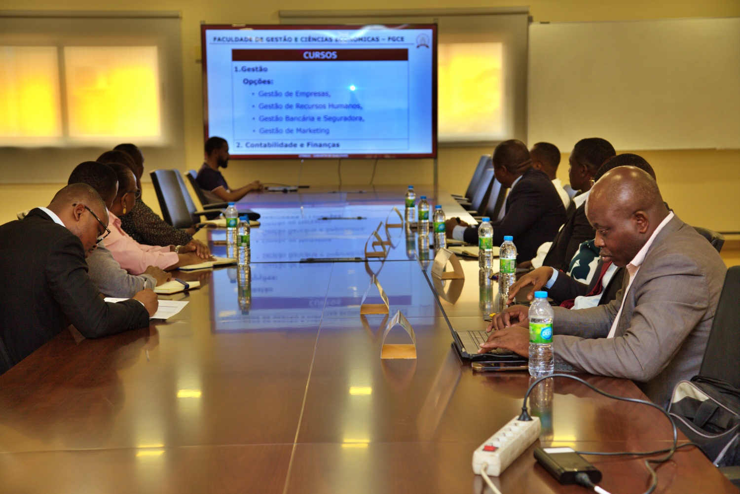 Por parte da UTANGA, a delegação foi acolhida pelo Vice-Reitor para os Assuntos Académicos, Eng. Eugénio Tchipako, em representação do Magnífico Reitor, juntamente com o Director do Gabinete do Reitor, os decanos das Faculdades de Engenharias, Gestão e Ciências Económicas, Letras e Ciências Sociais, o Director Técnico da Universidade e docentes.