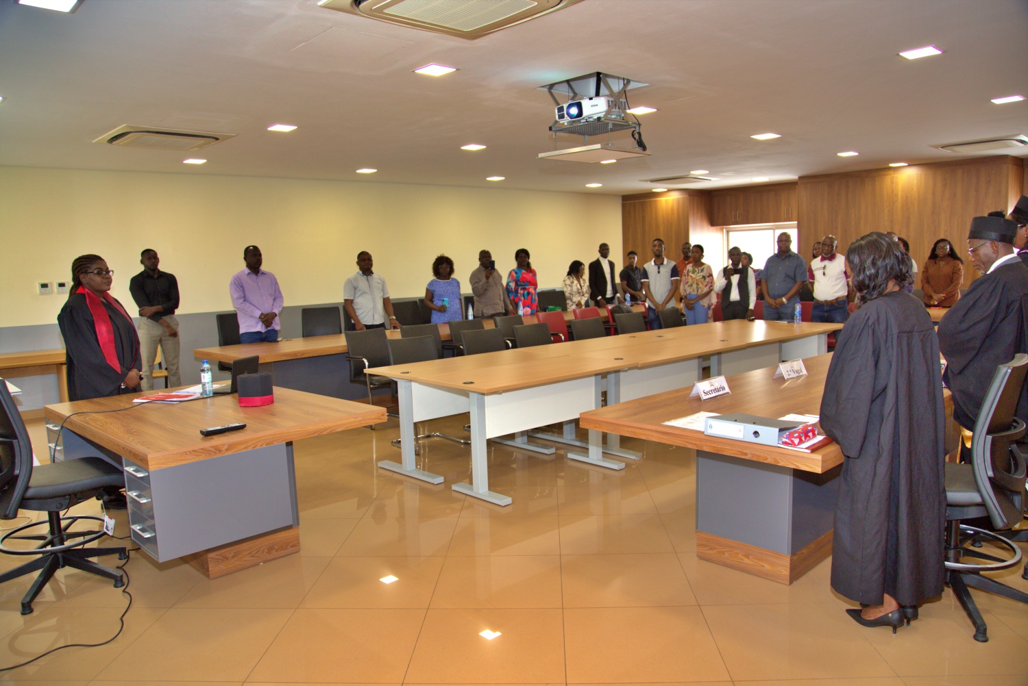 As defesas arrancaram no dia 26 de Novembro no emblemático Edifício de Práticas Forenses, o conhecido “Tribunal UTANGA”, agora também reconhecido como a casa dos cursos de mestrado. O ambiente académico ganhou novo brilho ao acolher, pela primeira vez, trabalhos científicos de nível avançado, apresentados com rigor e maturidade pelos mestrandos.