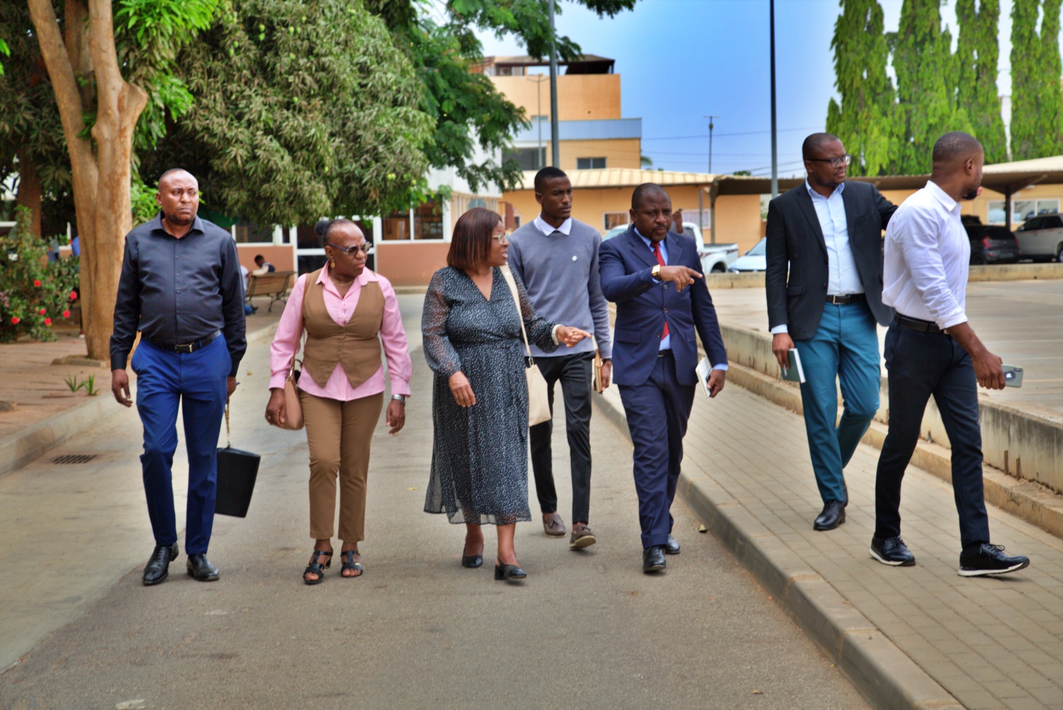 A comitiva visitante foi liderada pela Presidente do ISPOCA, Rebeca André, acompanhada pela Vice-Presidente Celestina Silepo, pelo Chefe de Departamento de Apoio à Presidência, Timóteo Dialamicua, e pelos representantes Joaquim Nfinda e Francisco Neves.